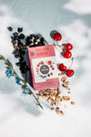 Cascara (kávová třešeň) – ovocná slupka kávových zrn s přirozeným obsahem kofeinu podpoří vitalitu a přidává lehký exotický nádech.